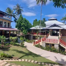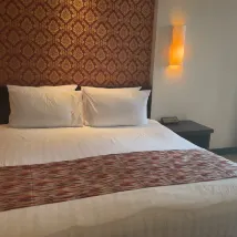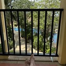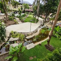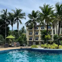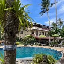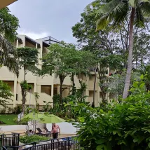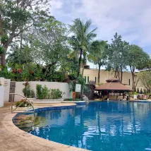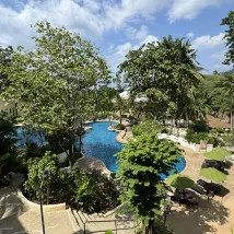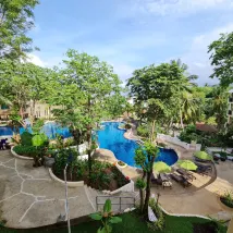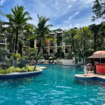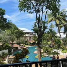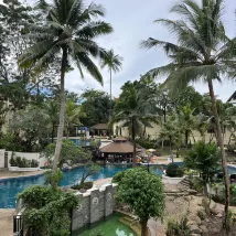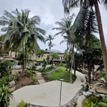 Проживали в ноябре 2024 г., бронировали номер самостоятельно через сайт. При заселении оказалось, что в нашем номере, который мы забронировали, неисправен кондиционер, поэтому нас заселили в другой номер (вместо одной большой кровати, две кровати). Из плюсов: красивый вид с номера на двухуровневый бассейн, кровати, хоть и односпальные, достаточно широкие, уборка каждый день, предоставляют наборы полотенец (пляжные и для ванны). Из минусов: отсутствие хорошего напора горячей воды в душе через лейку, а также слабое освещение в ванной и в номере в целом, на центральном входе не работал кран с водой, для того что бы ополоснуть ноги после пляжа. Территория отеля большая, красивая, но на момент проживания шёл ремонт, так что нам была открыта не вся его территория, но отдыху это не мешало. Вкусные, достаточно разнообразные завтраки (супы, яйца, рис, лапша, десерты, фрукты). В 10 минутах ходьбы от отеля располагается пляж Карон (с пляжа надо подниматься в горку, так как отель находится на возвышении). Рядом много кафешек, минимаркетов, парк с динозаврами, есть где прогуляться и отдохнуть.