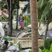 The resort seems to be very old, it might have been a nice place but long time ago. The place has a tropical vibe, it’s green, the pool is big (we were unlucky the water was cold), but there are some ruined buildings around and rooms are smelly. When we checked in there was hair in the bathtub and some strains in the bathroom. Everything looked dusty.