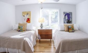 The Franklin Bedroom features two (2) pillow-top queen-sized beds and can accommodate 2-4 people. The dresser and closet space provides plenty of room for your luggage.