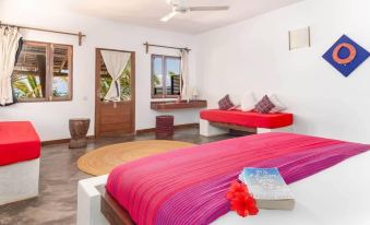 A wonderful beach experience on the east coast of Zanzibar. The villa itself is set in a small but gorgeous garden, beautifully maintained by John, the gardener. It fronts onto a long, beautiful beach, safe for swimming and with plenty of boats that will take you snorkelling etc. There are several seafront eateries where pole pole is embraced. Small, with only 5 rooms, its perfect for a relaxing stay. The rooms, especially the family rooms, are huge, beautiful and well equipped. Their pool is lovely, with loungers and cosy spaces all over. We loved the food which is freshly cooked and delicious, with changes made every day. Breakfast included fresh fruit and juices, pancakes, pastries as well as eggs, bacon, sausages.... and g reat coffee. Above all, the staff were lovely - warm, friendly, helpful and professional.