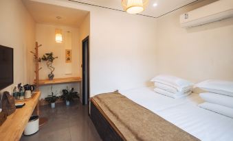 四合院格局:房間一進去,撲面而來的禪意風,簡約裏藏着巧思:原木色配白色,留白恰到好處,牆上的畫卷、角落的綠植都添得剛剛好,一看就很有格調。保留山西傳統民居的土炕房設計,院落中央常設天井或棗樹,搭配藤蔓、花卉等自然元素,營造出“朝聞鳥鳴,夕待餘暉”的靜謐感。部分房間設有獨立陽台,可近距離感受古城生活氣息。