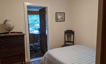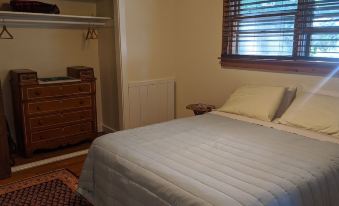 Cousy Cabin is a charming old-fashioned cottage, perched on a hill over the water. Its quaint layout is perfect for a small family. It is tucked on a 300-acre nature preserve, nestled amid a wildflower garden. A short walk from the waterfront (just 1,000 feet or so), Cousy feels removed from the bustle of the world. A secluded deck offers a view of the lake from high atop its hill and provides a private spot to enjoy dinner or a book. The cabin has 1 bedroom with a queen sized bed and 1 bedroom with a full sized bed. Walking through the full bedroom brings you to a sun porch with a twin sized daybed. Guests have full access to the lake, canoes, kayaks, firepit, and 300 acres of woods and trails.About pets:No pets allowed.About checkOut:Check out before 10:00 AM.About children:Children allowed: ages 0-17.About checkIn:Check in after 3:00 PM.About smoking:Smoking is not permitted.About minBookingAge:Minimum age to rent: 18.About events:No events allowed.