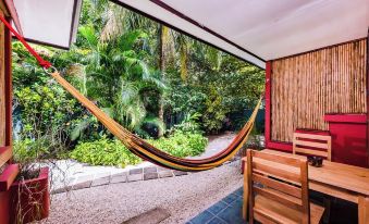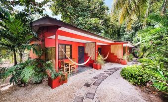 Casa Camaleon is the perfect location for a couple or even a family traveling together. The location is quiet and steps from the beach and famous surf break "Playa Grande". Our private and fenced property, in the gated community of Palm Beach Estate, is nestled amongst huge teak trees where you will find the apartments to be the ideal distance to town and beaches. We are a very short walk (about 200 meters) to the beach sand. You can hear the ocean from your apartment and can actually see a little bit of blue through the trees from your back patio. The walk to the beach is along a shaded path where you arrive at an uncrowded wide open beach with great surf. Low tide is perfect for cycling along the water's edge and high tide is for surfing. Our apartments are fully equipped with kitchens and utensils plus cookware for meals, private bathrooms with great water pressure and hot water, private porches with dining tables for meals outside. Free wireless internet. Outdoor rain shower in the garden for when you rinse off after the beach. Surfboard and bicycle rentals available onsite. Its price is right and its got everything you need! You will love it, feel at home and never want to leave!