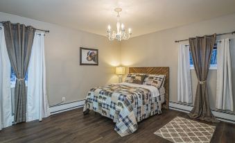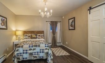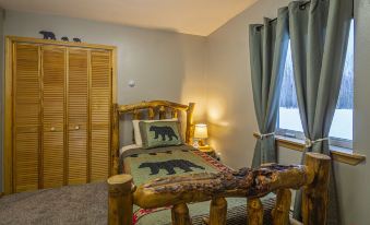 Red Bear Den has a log cabin feel with cozy modern amenities. Decorated with pieces of local Alaskan artwork and furniture, this beautiful home will give you a taste of Alaska that you’re looking for, with the benefit of indoor plumbing. At 1300 square feet, this home will sleep 6 adults with 3 bedrooms and a sleeper sofa. There are two bathrooms and a laundry room with access to a washer and dryer during your stay. The kitchen is equipped with refrigerator, double stove, dishwasher, Keurig, and basic cooking essentials that are provided. If you’re looking for a family friendly home, this is it! A Pack and play, high chair, and a stroller are available. Satellite Cable, DVD player, and High Speed Wireless Internet are also available for use and entertainment.