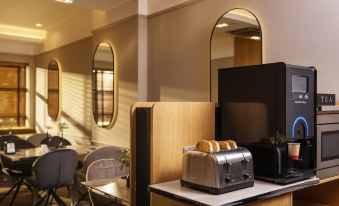 Khách có thể tìm thấy quà vặt và nhiều món ăn nhẹ tại tiệm/cửa hàng đồ ăn nhanh, hoặc nghỉ lại phòng và gọi món với dịch vụ phòng (có giới hạn thời gian) của Khách sạn. Khách có thể dùng bữa sáng buffet (có phụ phí) từ 8:00 đến 10:00 hàng ngày.