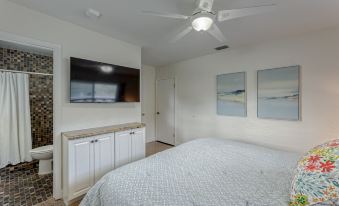 Bedroom 1- King bed and bathroom w/ shower and TV