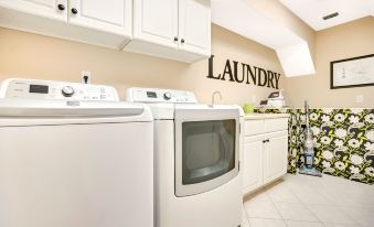 Our gorgeous home layout is very popular for multiple families. Scroll through pics for a rendering of the layout. The large bunk room on the first floor has two twin over full bunk beds, plus a twin trundle bed. The kids have their own place to hang out as well as their own streaming TV. Washer and dryer are on the first floor to make planning and packing for your vacation even more convenient.