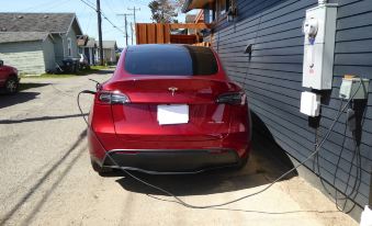 NOW FOR THE GOOD STUFF......OAK ALLEY is a luxurious hide-a-way that provides: in the alley parking with EV charging (NEMA 14-50 RV 40 plug on a 50 amp circuit, a private patio, a Great Room for cooking, dining, and relaxing. A "Full" sized Murphy style "box-bed" sits in the front room ready for up to two additional children. A full size stacking washer/dryer is next to the bath area.