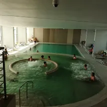 The whole hotel is reminiscent of the trade union resorts of the socialist era. On arrival, there is no access to the entrance, and luggage has to be carried about 50 metres to the reception, come rain or shine. Parking is free, provided you can find a parking space somewhere, and there's no help in finding one, park where you can, in my case it was about 500 metres from the hotel, on the hill next to the buses. The groups arrive in huge buses - like in socialism for the tour - so as a private guest you have to wait until the groups' business is sorted out, then it's your turn. The guest area has been renovated, but the service roads are in a state of terminal disrepair. The air-conditioning units have probably not been cleaned for years, smiling merrily with mould... Meals are served in rotation, and you can pick up your prepaid breakfast and dinner on a self-service basis. The noise is horrendous, over 100 people trying to eat at once, children screaming and shouting is the normal noise level. At dinner, the few staff who call themselves waiters - the rest are just clearing the dishes - immediately find you to bring you a drink at a gold price, which they don't pour and, for example, you have to drink beer from a wine glass, as it's on the table, they don't bring you another. The crowds can make you wait half an hour to pay for your drink, but if you don't tip enough they will make a point of it, making faces. They heat without any need for heating, but you can't adjust the temperature on the panel in the room, it's disabled, and if you open the balcony door, the rain pours into the room. Do not go during school holidays, because the swimming pool area is full of parents with small children and the pool is not big enough for such a crowd, because other paying guests can come in from the outside. Kids running around screaming in the hallways, nothing like a four star hotel. The swimming pool water is dirty, smelly, after a swim the bathing suits smelled so bad you couldn't wash them. We threw them out. The staff are not helpful, they don't even want you to have a good time and come back because of the mass tourism. I will not.