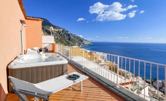 A unique property will surprise you with a wonderful terrace overlooking Positano: enjoy the stunning view from the Jacuzzi, sipping a glass of wine while living your best life: sunbathe in the morning and stargaze at night, away from the noise of the tourist crowds.