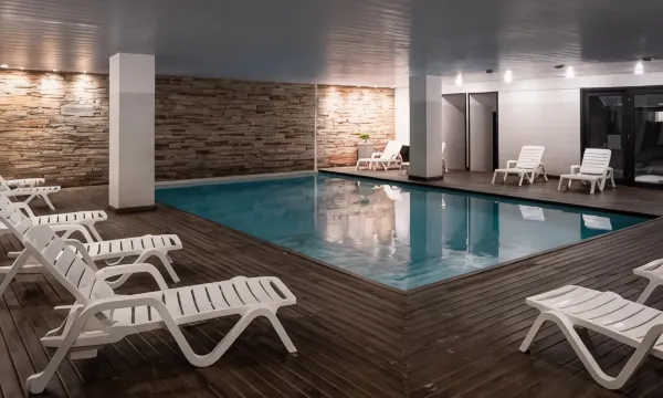 Really convenient, good breakfast and inner and outer pools. Decoration could be renewed.