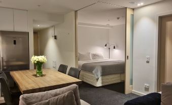 It was a really nicely appointed one bedroom apartment that was more like a 2 bedroom as you could close off the second sleep area from the lounge. Beds were comfortable and the gas fireplace warmed the room very quickly. Fully equiped kitchen, smart tv and a washing machine we used daily. Close to bus stops and provided parking. Not many food options close by but you are a short drive to town.