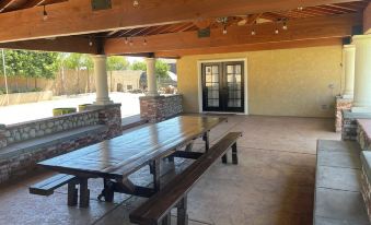 Located near Victoria Gardens and just a short drive from Los Angeles, this backhouse retreat offers easy access to shopping, dining, and entertainment—while still providing the tranquility of a private residence. With flexible rental options and add-ons available for parties of up to 80 guests, your oasis awaits.About pets:No pets allowed.About checkOut:Check out before 11:00 AM.About children:Children allowed: ages 0-17.Swim at your own risk. No life guard on duty..About customRules:VRBO Rental and Party timing: Though guest will rent the VRBO site, the party must have a dedicated start and end time. Coordinate with the host..Parking is required on the property. Picture on this site shows how parking should be done. Once all spots R used, guests may utilize the street.,Vendor Coordination: If you have a vendor, you must be present at the venue to welcome them. This rental is for the venue—not for event coordination..About checkIn:Check in after 3:00 PM.About smoking:Smoking is not permitted.About minBookingAge:Minimum age to rent: 21.About events:Events allowed: family gatherings, birthday parties, weddings.Maximum event attendees: 80,Party must have set start and end hours..