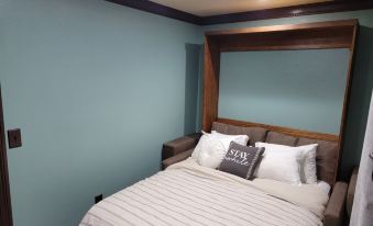 Inside, you'll find a thoughtfully curated space featuring a cozy bedroom, a full bathroom, and a welcoming lounge area perfect for unwinding or entertaining. The fully equipped kitchen makes meal prep a breeze, and a bonus sink just inside the garage adds convenience for clean-up during longer stays or hosted events.