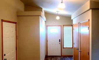 Large open living/dining area, with private outside patio. Spacious two car garage with extra off street parking. Bedrooms have comfortable queen beds with additional sleeping space in living room (couch converts). Conveniently located near Rapid City airport (11minutes). Zero entry property.About pets:Pets allowed: dogs and cats less than 50 lbs per pet (limit 2 pets total).About checkOut:Check out before 11:00 AM.About children:Children allowed: ages 0-17.About checkIn:Check in after 3:00 PM.About smoking:Smoking allowed: in designated areas.About minBookingAge:Minimum age to rent: 21.About events:No events allowed.