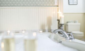 Old fashion feel, posters beds were amazing. Appreciated the nook with comfortable wing chairs with a table set up with a little carafe of Sherri, very cute. Keurig coffee pods only had 1 caffeinated pod of coffee with two guests would have appreciated two. Heavy drapery with an unexpected design, hung well & kept the light & noise minimal. Pleasant space!