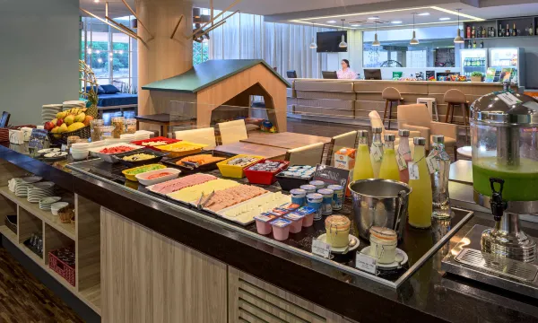 Khách có thể lựa chọn dùng bữa tại nhà hàng của Khách sạn hoặc nghỉ lại trong phòng và thưởng thức những món ăn ngon với dịch vụ phòng (có giới hạn thời gian). Thư giãn sau một ngày dài bên cạnh ly đồ uống yêu thích tại quầy bar/khu lounge. Khách có thể dùng bữa sáng buffet (có phụ phí) từ 6:30 đến 10:00 hàng ngày.