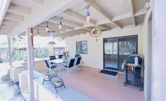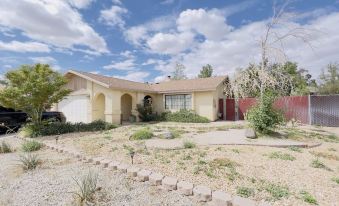 A Beautiful Spanish Style El Dorado Home, Centrally Located in The City of Ridgecrest. Surrounded by breathtaking views and close to many stores and restaurants. Enjoy your mornings in a large covered patio surrounded by trees and flowers with many types of resident birds including Hummingbirds, doves and over 10 species of desert finch. This Newly remodeled home has central Air Conditioning and Heating with additional brand new units in the bedrooms for your convenience. EV friendly Home.About pets:Pets allowed: less than 20 lbs per pet (limit 2 pets total).About checkOut:Check out before 11:00 AM.About children:Children allowed: ages 0-17.About checkIn:Check in after 2:00 PM.About smoking:Smoking is not permitted.About minBookingAge:Minimum age to rent: 24.About events:No events allowed.