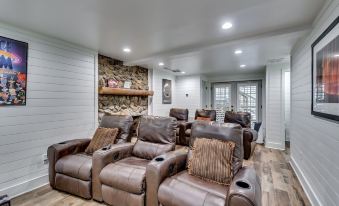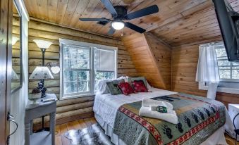 Our cabin boasts 4 spacious bedrooms, 2 full baths, and 2 half baths, providing ample space and comfort for your entire group. Immerse yourself in relaxation with your very own private swimming pool, unwind in the soothing hot tub, and gather around the fire pit for enchanting evenings beneath the starlit skies. Delight in outdoor culinary adventures with our top-notch grill, or revel in indoor entertainment in the game room and movie room. Connect seamlessly with high-speed WIFI and enjoy entertainment with Smart TVs in every room. Our cabin is your sanctuary, offering all the modern amenities you desire.
