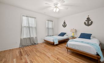 Located just three blocks from the water, The Salt and Sea Cottage is the perfect getaway for families, friends, and coastal adventurers. This beautifully furnished 4-bedroom, 2-bathroom home comfortably accommodates up to 10 guests, providing a cozy and relaxing escape.