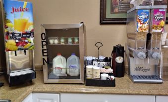 No breakfast as advertised… no milk, cereal, or even juice or coffee… huddle house made the morning not horrible, but it shouldn’t be advertised if you aren’t going to at least offer cereal or drinks even… vending machine was not working either which made for tough drink situations with no ride