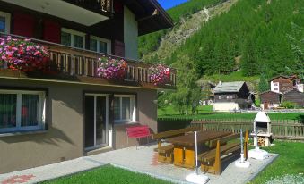 Chalet "Amara", 2 storeys, surrounded by trees and meadows. Outside the resort, 2.5 km from the centre of Saas Grund, in a quiet position, located by a road. Private: garden. Garden furniture, barbecue. In the house: central heating system. Parking at the house. Shop 2 km, restaurant 300 m, bus stop 100 m. Skisport facilities 2.5 km. 3-room apartment 65 m2, on the ground floor. Cosy furnishings: living/dining room with satellite TV, flat screen and radio. Exit to the garden, to the patio. 2 double bedrooms, each room with 2 beds and hand-basin. Open kitchen (oven, dishwasher, 4 ceramic glass hob hotplates, microwave). Shower/WC. Large patio. Barbecue, deck chairs. Very beautiful view of the mountains and the countryside. Facilities: baby cot. Internet (WiFi, free). Parking at the house. Please note: non-smokers only. Maximum 2 pets/ dogs allowed.