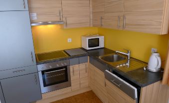 The accommodation is very clean and close to the bus station. The ski area can be reached in a few minutes. The beds are comfortable and it's quiet. The equipment in the kitchen is sufficient, it has rather few devices. Overall highly recommended.