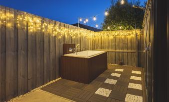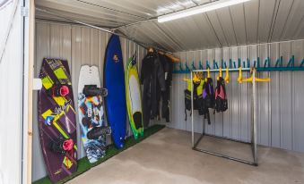 The yard has a 16m2 pebbled area with fire pit. 16m2 of astro turf. Outdoor shower and outdoor bath with hot water and it's own hand shower. The bath doubles as a water sports gear wash bay with drying room.