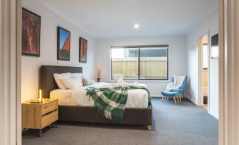 This home has a huge master bedroom with king bed, walk in robe, ensuite, 40 inch smart TV and reading chair, and side tables with 3 port charging cables.