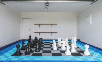 Our garage has room for 2 cars and offers parking for 2 more cars in the driveway. There is also free street parking for cars and boats. EVs are welcome charge off the power point (please have vehicle outside while charging for safety). The Table Tennis and Life Sized Chess located here are a massive hit with all our guests.