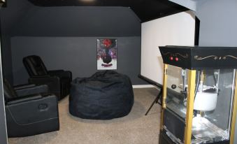 Very responsive host. The location was OK for where we needed to be. Very clean place. Narrow walkways up the flight of stairs. We spent most of our time in the movie room which was AWESOME!! I appreciate that they also had every flavor of popcorn seasoning.