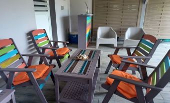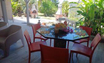 Apartment on the ground floor in a large colonial type house which offers several apartments (see my other ads). The 32 m2 apartment is made up of 1 living room with TV, 2 air-conditioned bedrooms 2 shower rooms with walk-in shower, 2 toilets, 1 equipped kitchen with washing machine opening onto the 24 m2 covered terrace, in front of the tropical garden and swimming pool.