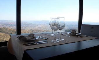 This hotel has the most amazing location on its own at the head of the Douro valley, an ideal stop on our way down to Porto on motorbikes. We got a mid-week deal on a superior room and got the best view I have ever had in a hotel, wish I could have stayed longer. Lots of free parking, friendly staff and amazing outdoor infinity pool. We found the bar prices very reasonable - food was disappointing but OK, restaurant lacked ambience in the evening. The hotel needs a touch of maintenance in some areas but our room was very clean and had the wow factor.