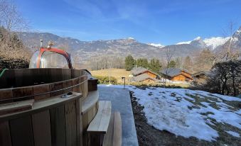 It is located in Samoens, a beautiful mountain village, authentic, in Haute Savoie, very lively in summer and winter. It is precisely in the quiet hamlet of Vercland, 3km above the village, next to the restaurant La Reposette, at the foot of the ski slopes in winter and hiking trails in summer.