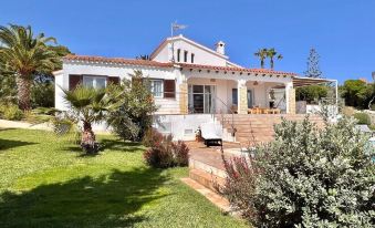 The big difference, with no other home, is its panoramic views of the turquoise Son Bou beach.About pets:Pets allowed: less than 55 lbs per pet (limit 2 pets total).About checkOut:Check out before 10:00 AM.About children:Children allowed: ages 0-17.About checkIn:Check in after 3:00 PM.About smoking:Smoking allowed: in designated areas.About minBookingAge:Minimum age to rent: 25.About events:No events allowed.