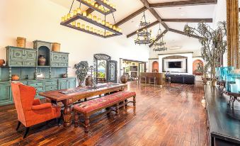 The master suite is a true haven of relaxation with its fireplace, private balcony and en suite bathroom with luxurious bathtub. The other 4 bedrooms offer the same level of comfort and sophistication, ensuring that everyone in your group has a restful sleep. Spend lazy afternoons by the shallow depth (3 to 4 feet) private pool and jacuzzi, or retreat to the outdoor living area for a barbecue dinner or a game of cards. At Casa Elena, every detail has been thoughtfully designed to ensure that you experience the ultimate luxury and comfort. Book your stay now and indulge in your own private paradise!