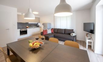 Our apartment is located in a central and quiet residential area, ideally located in the south of South Tyrol between the center of Eppan and Kaltern am See. There is a small lawn, reserved parking space and a garage for bicycles (with a socket for e-bikes). The most popular destinations such as B. the Montiggler forest lakes (bathing lakes) and the numerous castles and palaces are easily accessible on foot, by car or by public transport (bus stop 300 m, bike path 500 m away). In the immediate vicinity there is a large bike shop with bike rental. Appiano is a paradise for bikers and hikers. Look forward to relaxing days in the 70 m2, modern apartment, consisting of two separate bedrooms, a kitchen with living room and a large bathroom.About pets:Pets allowed: limit 5 total.About checkOut:Check out before 10:00 AM.About children:Children allowed: ages 0-17.Babybett und Hochstuhl vorhanden..About checkIn:Check in after 4:00 PM.About smoking:Smoking is not permitted.About minBookingAge:Minimum age to rent: 18.About events:No events allowed.