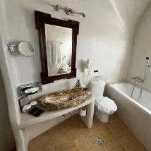 Tuy nhiên, không có ranh giới giữa các khu vực riêng tư, vì vậy khách hàng của nhà hàng và khách từ các phòng khác sẽ ra ban công mà chúng tôi không biết, điều này rất khó chịu. Ngoài ra, áp lực nước từ vòi sen cũng rất yếu. Điều này có thể không chỉ giới hạn ở khách sạn này mà còn là vấn đề chung của toàn bộ Oia do cấu trúc của vùng đất này.