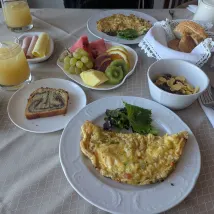 Trước hết, vị trí rất tốt, bên cạnh điểm tham quan cối xay gió, bạn có thể ngắm hoàng hôn từ ban công, cũng gần trung tâm thị trấn, môi trường rất yên tĩnh và không có bất kỳ sự can thiệp nào. Nhân viên phục vụ cũng rất nhiệt tình. Vì chuyến bay đến Athens còn sớm nên khách sạn cũng chuẩn bị bữa sáng cho chúng tôi. Mặc dù khá đơn giản nhưng vẫn rất chu đáo.