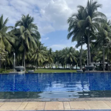 Spent 7 splendid days here! Had fears with communication issues when considering China for vacation in whole, but the hotel personnel provided reasonable Eng/Rus support no problem. The only major downside for me in the room was lack of hooks to hang stuff. Everyday room cleaning was a nice touch. Had a lot of playful hours in pool/beach areas. Coconut sellers on beach to get some Bahamas vibes. By the way the hotel possess wonderful private beach equipped with sun-benches and umbrellas in the picturesque palm bay. And also would like to point out delicious breakfasts fulled of European and Chinese cuisine.