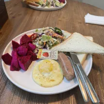 I would actually love some bacon, or a choice of either bacon or sausage. Instead of the salad, rather add a hash brown :)