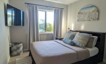 The perfect location for a short getaway or long term stay. It features one Bedroom with blackout curtains + a very comfy queen size bed, and a comfy queen-size sofa-bed in the living room. 55' smart TV in both areas, A/C with coverage for the entire house. Access to high speed Wi-Fi, board games and a designated workspace.