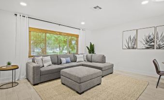 As you walk in, you will immediately feel at home. Living room is equipped with a comfortable sectional, ottoman, and many more little homey touches.