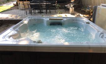 • This home features a private hot tub, perfect for relaxing after a long day.