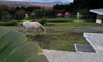 In our property you can also enjoy the view of the Irazu Volcano, as well activities such as horseback riding, and within walking distance, you can go the Turu river, waterfall, and also visit the top of the hill letting you deleite with more panoramic views of San Jose.