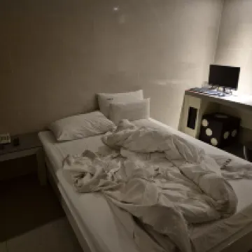 Phòng rất nhỏ. Nhưng có đủ mọi thứ bạn cần. Nội thất đẹp. Giường cứng. Bạn cũng có thể mua Lulu. Rất nhiều camera ở mặt trước tự động quan sát. Nên cảm giác rất an toàn.