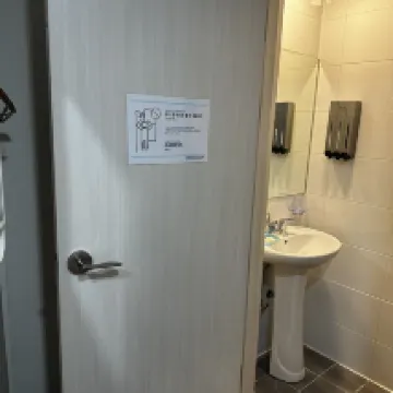 Sẽ thật tuyệt nếu có một chiếc gương trong phòng. (Nhà vệ sinh không có ổ cắm nên khó lắp đầu.)