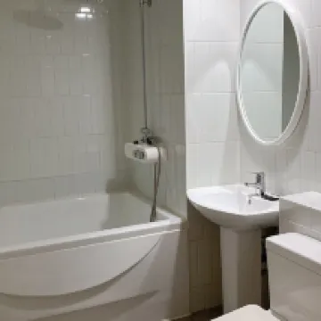 Bồn tắm có thể chứa nước nóng, ngoài máy sấy tóc còn có máy duỗi tóc sẽ được chị em phụ nữ đánh giá cao.