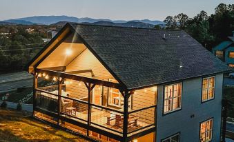 “No More 9 to 5” is a modern cabin with mountain views, just 4 miles from Dollywood and 2.8 miles to The Parkway. This 3-bed, 2.5-bath retreat sleeps 10 and includes a private hot tub, a game room with air hockey and arcades, a cozy fireplace, and a kids' campout area in the bunkroom. Relax on the inviting outdoor spaces, including a covered deck with cozy seating and a lower private patio with the hot tub. One king bedroom suite is on the main level and perfect for guests who prefer no stairs.
