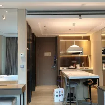 Khách sạn tôi ở lần trước nằm đối diện sân bay Hồng Kiều. Căn hộ tôi ở lần này có phòng rất rộng và đầy đủ tiện nghi, có bếp từ, lò nướng điện và lò vi sóng nếu bạn không muốn đi. ra ngoài ăn uống cũng có thể tự làm vài bữa ăn đơn giản tại phòng, rất hợp vệ sinh. Nếu có nhu cầu đi du lịch gia đình thì có thể lựa chọn khách sạn này.